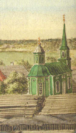 Последняя Троице-Задвинская церковь на Кливерсале. Рисунок Йоханна Броце