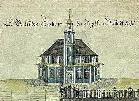 1792 год. Церковь святой Гертруды на старом месте. Рисунок Йоханна Броце