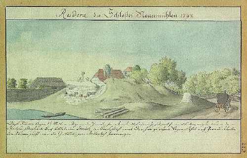 Развалины крепости Нейермюлен в 1798 году. Рисунок Йоханна Кристофа Броце